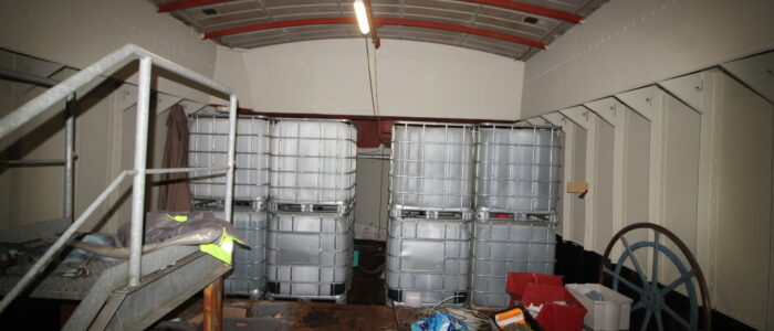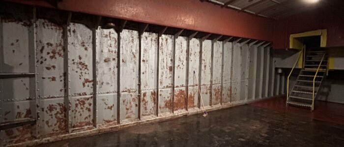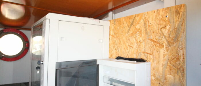 La cale a été entièrement dérouillé, traitée et repeinte (sol et bordés).