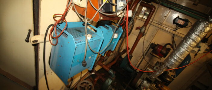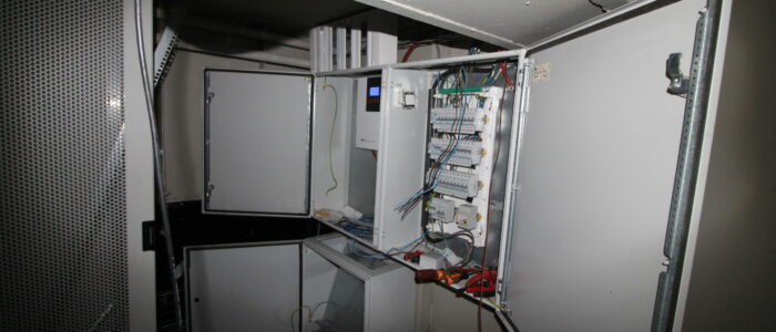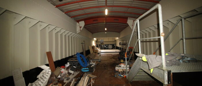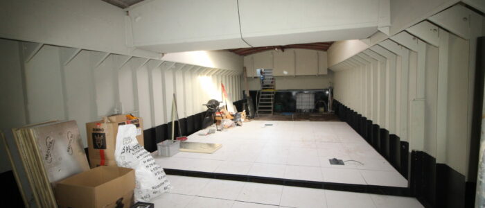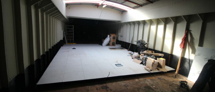 La sol est équipé d’un planché technique sur plots de 40×40 en bois sur plots, ce qui permets de garder les accès partout entre le sol et le double plancher de fer.